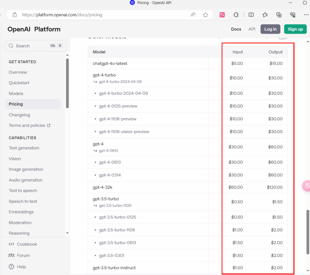 转发和官方计费一样,以下是官方文档模型提示&补全计费价格。