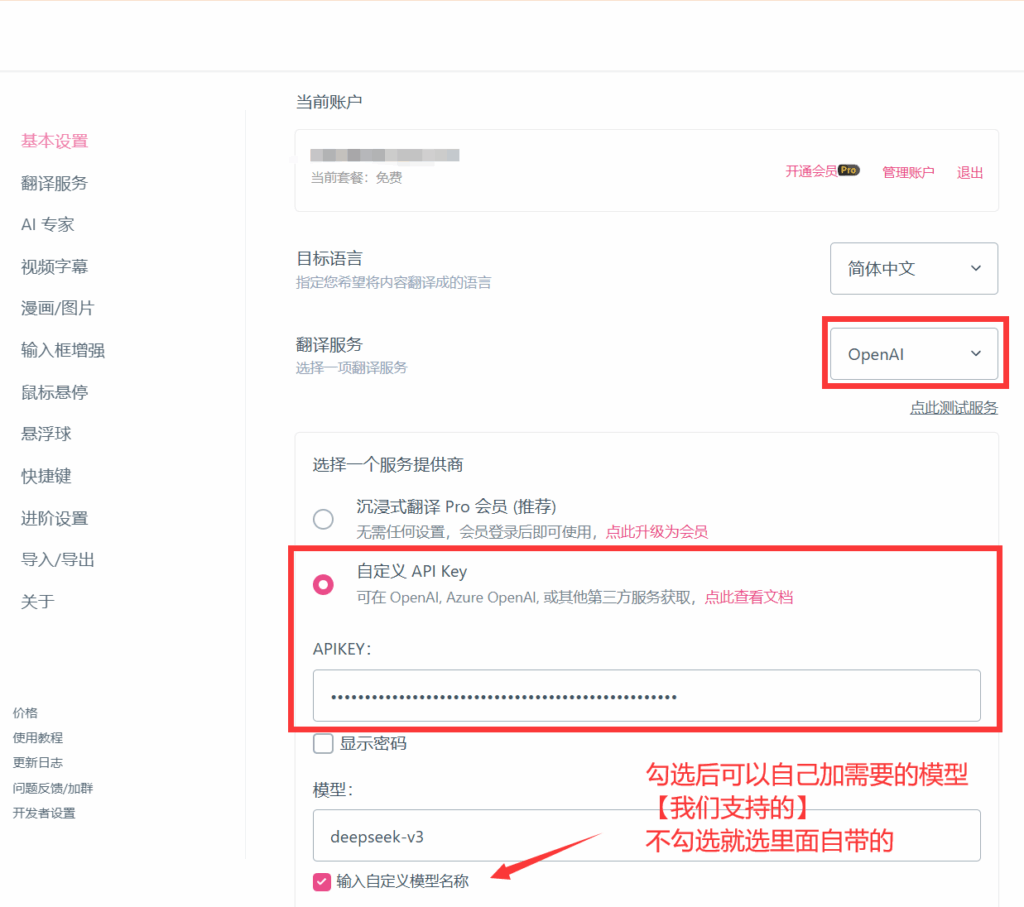 1. 沉浸式翻译immersive translate配置