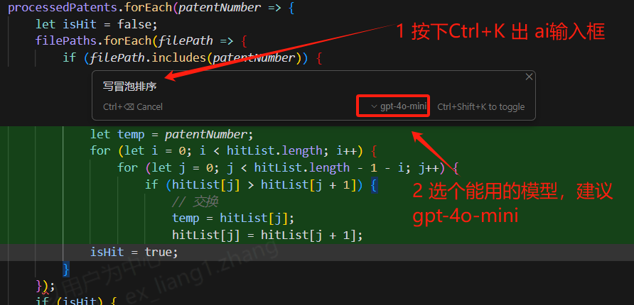 步骤2:按下 Ctrl + K 弹出ai输入框 ,